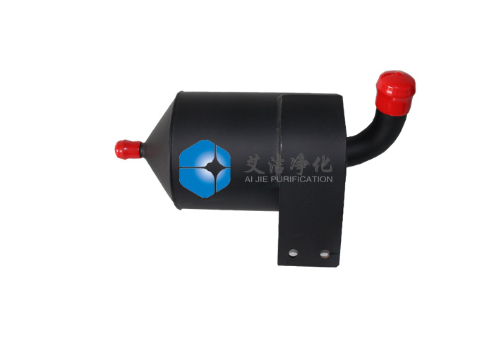 艾潔凈化生產的旋風式油氣分離器是讓氣液混合氣經過切向進氣道或是螺旋進氣道進入分離器內,使混合氣在分離器內旋轉運動,以此產生離心力來實現(xiàn)油滴的分離,它的分離機理與主動離心式油氣分離器相同,只是不需外界提供動力。
